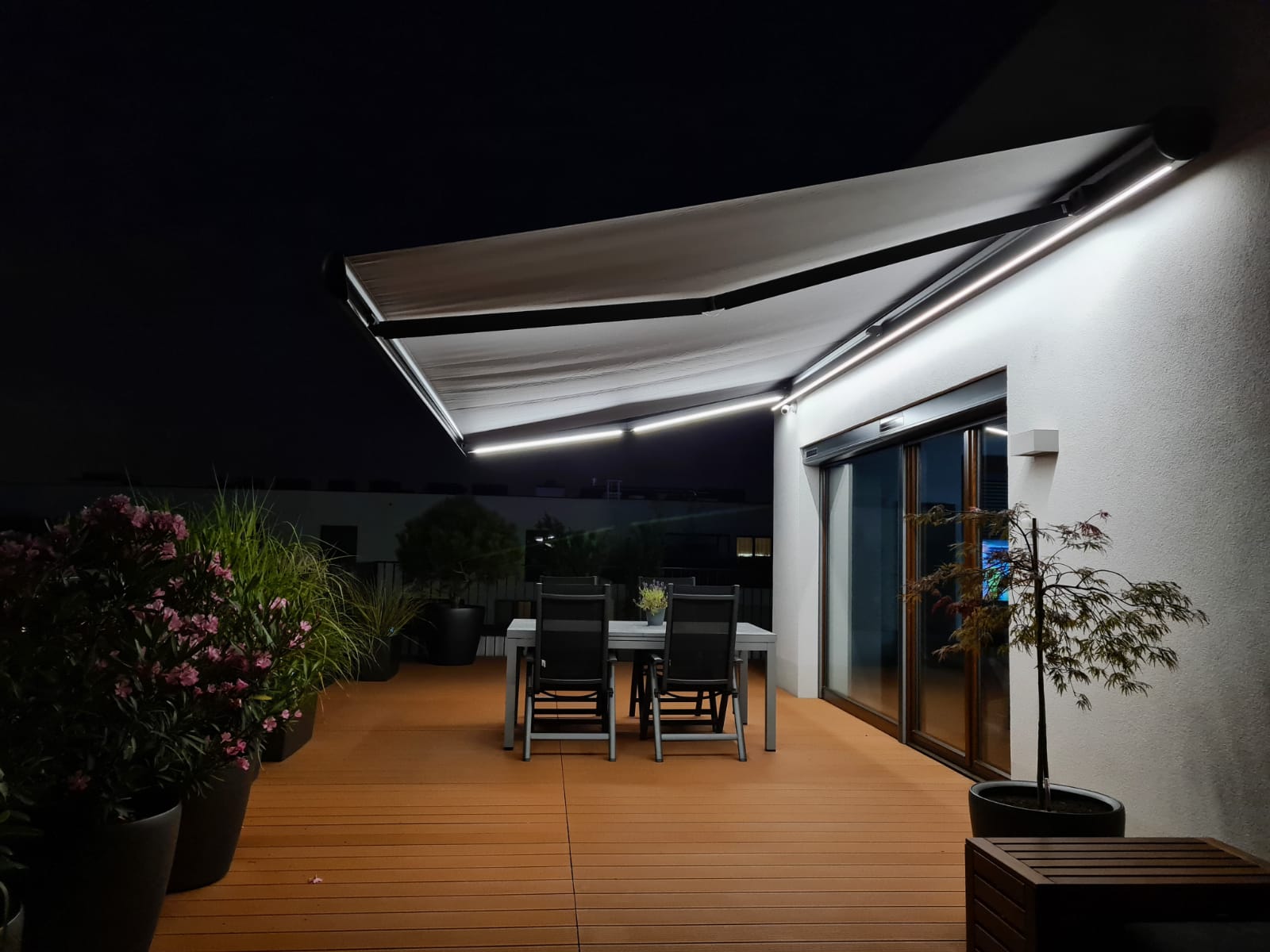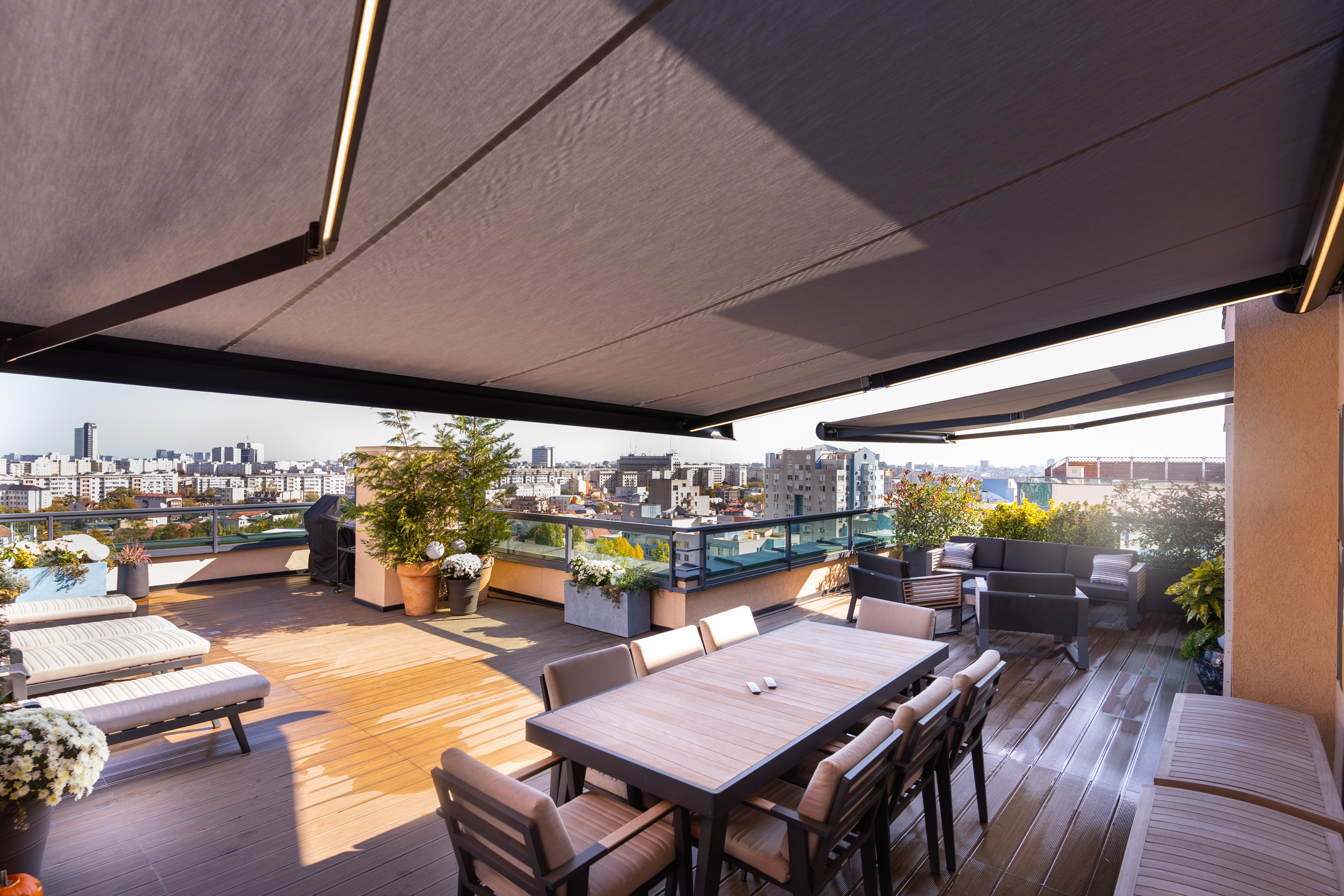 - Tende da sole di design interamente Made in Italy con struttura in alluminio e componenti in acciaio.